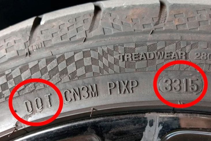 Validade de um pneu está estampado na lateral, indicando ano e a semana de produção, que não deve rodar se superar 10 anos