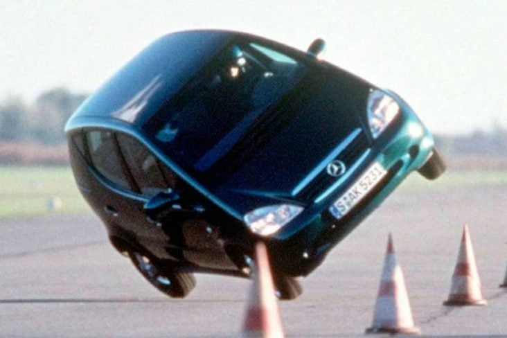 Quem viveu a década de 1990 deve se lembrar do problema de estabilidade envolvendo o Mercedes Classe A. O compacto causou uma revolução na gama do fabricante, devido ao projeto incomum. A carroceria elevada, característica marcante do modelo, devia-se, entre outros motivos, a uma estrutura de deformação programada sob o assoalho. Mas, ironicamente, a altura trouxe um problema de segurança.