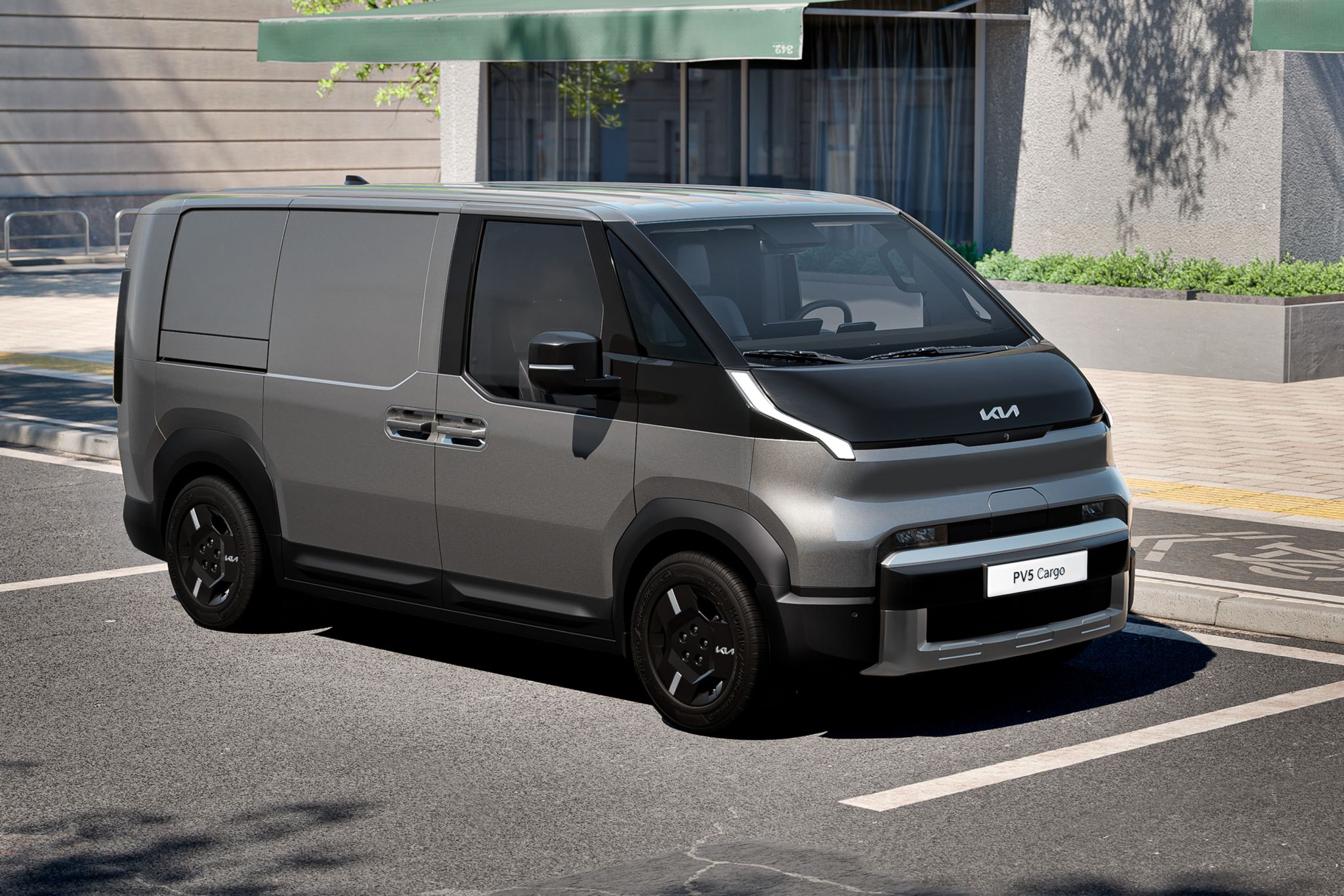 Para o setor de carga, a Kia trouxe para o salão o furgão elétrico PV5. Ele possui autonomia de 416 km no ciclo WLTP e deverá chegar no segundo semestre de 2026.